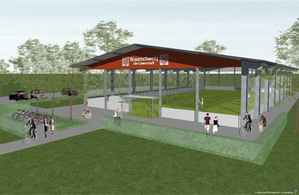 Gleich auf vier verschiedenen Braunschweiger Sportanlagen werden die vom Planungsbüro PS+ geplanten Freilufthallen realisiert. Mit dem Bau der Hallen wurde im Herbst 2020 begonnen. Die Freilufthallen sind für den Fußballsport ausgelegt und sollen zur Entlastung der konventionellen Mehrfach-Sporthallen beitragen.
