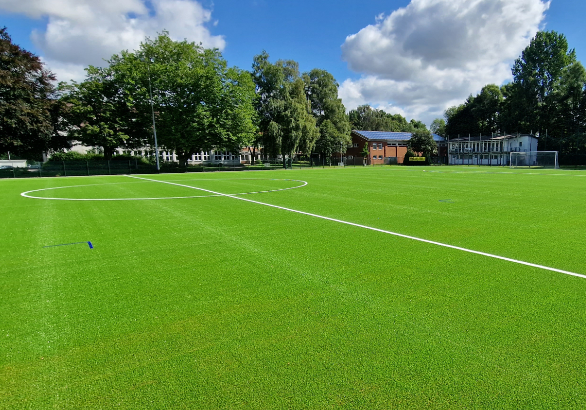 Passend zum Beginn des neuen Schuljahres konnte der neue Kunststoffrasen mit Sand- und Korkverfüllung wieder in Nutzung gehen -Schülerschaft der angrenzenden Schule und der Fußballverein waren begeistert und freuten sich auf den Sportbetrieb!
