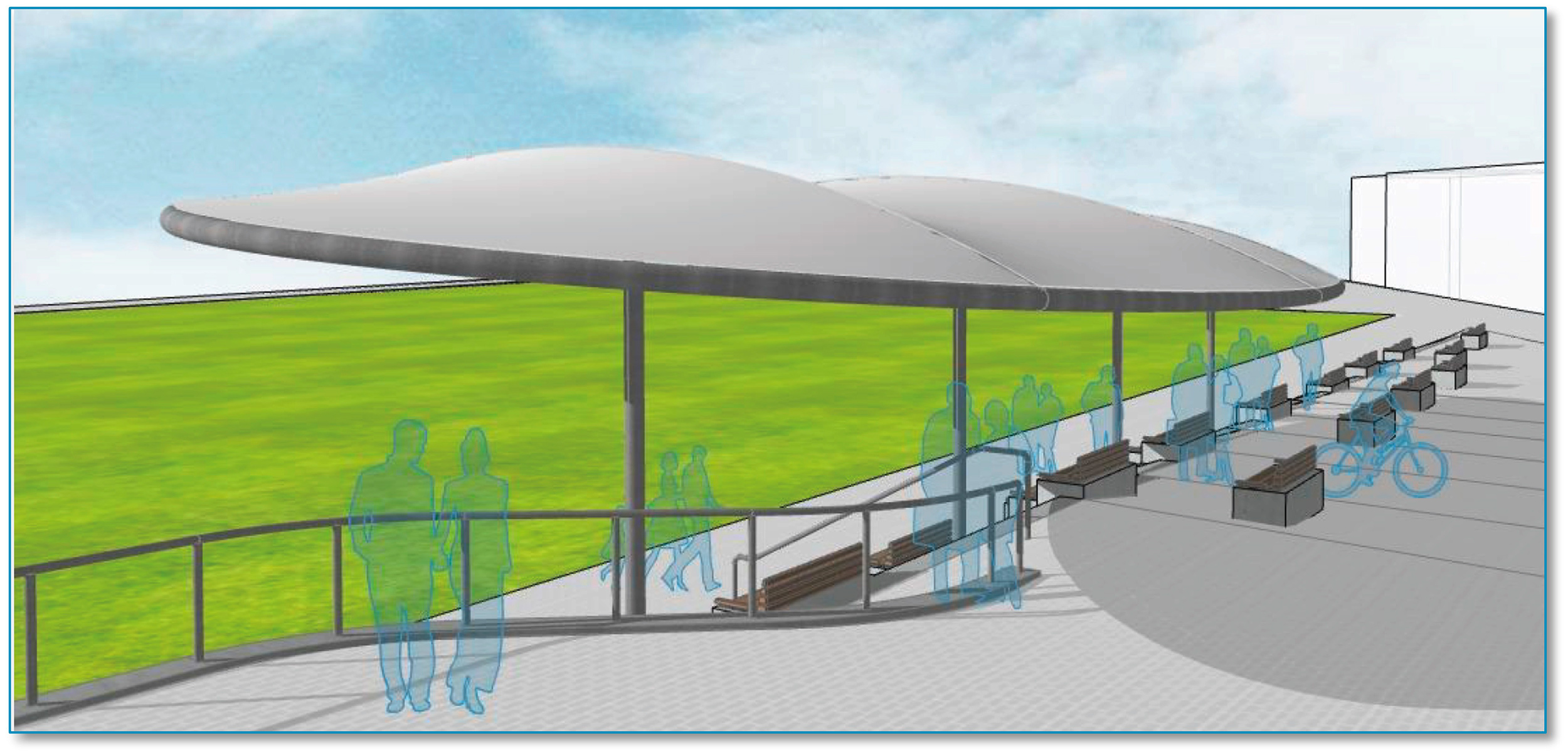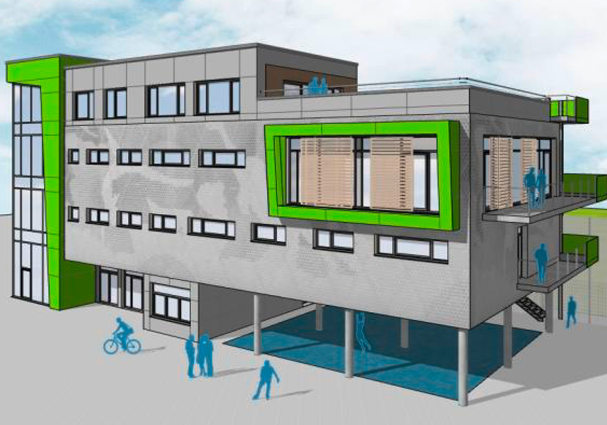 Als Mittelpunkt des Areals – zukünftig von einer Geländelaufbahn eingefasst – ist ein Funktionsgebäude geplant. Vielfältige Nutzungsmöglichkeiten für den Schul- und Freizeitsport werden unterschiedlichste Spielfelder, leichtathletische Einrichtungen sowie ein Outdoorfitnessbereich bieten. Für Aufenthaltsqualität soll eine wettergeschützte Stufenanlage sorgen.