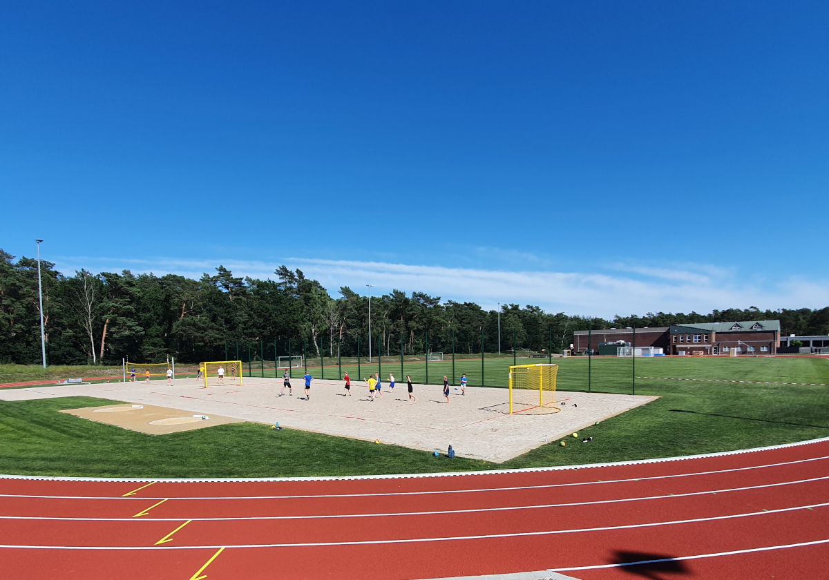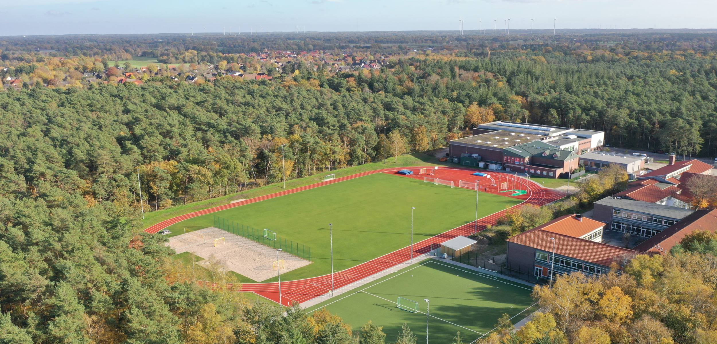Eingebettet im Wald befindet sich die gleichnamige „Waldschule“ von Hatten. Die an die Schule angrenzende Sportanlage wurde nun, unterstützt mit europäischen Fördermitteln, umfangreich saniert. Im Fokus der Sanierung stand von Beginn an die Multifunktionalität der öffentlich zugängigen Anlage, da sie der Schule, den Vereinen und der Öffentlichkeit zur Verfügung steht. Neben der Rundlaufbahn und dem Naturrasengroßspielfeld mit automatischer Beregnungsanlage wurden in den Segmenten unterschiedliche Sporträume realisiert. In den Segmenten stehen nun neben der Kugelstoßanlage auch ein Beachvolleyball- und ein Beachhandballfeld zur Verfügung. Darüber hinaus können neben den klassischen Leichtathletikdisziplinen wie Stabhochsprung, Diskuswurf, Speerwurf und Hochsprung auch Basketball- und Handballsport ausgeübt werden. Ein beleuchtetes Kunststoffrasenspielfeld und ein Boulplatz ergänzen das Angebot.