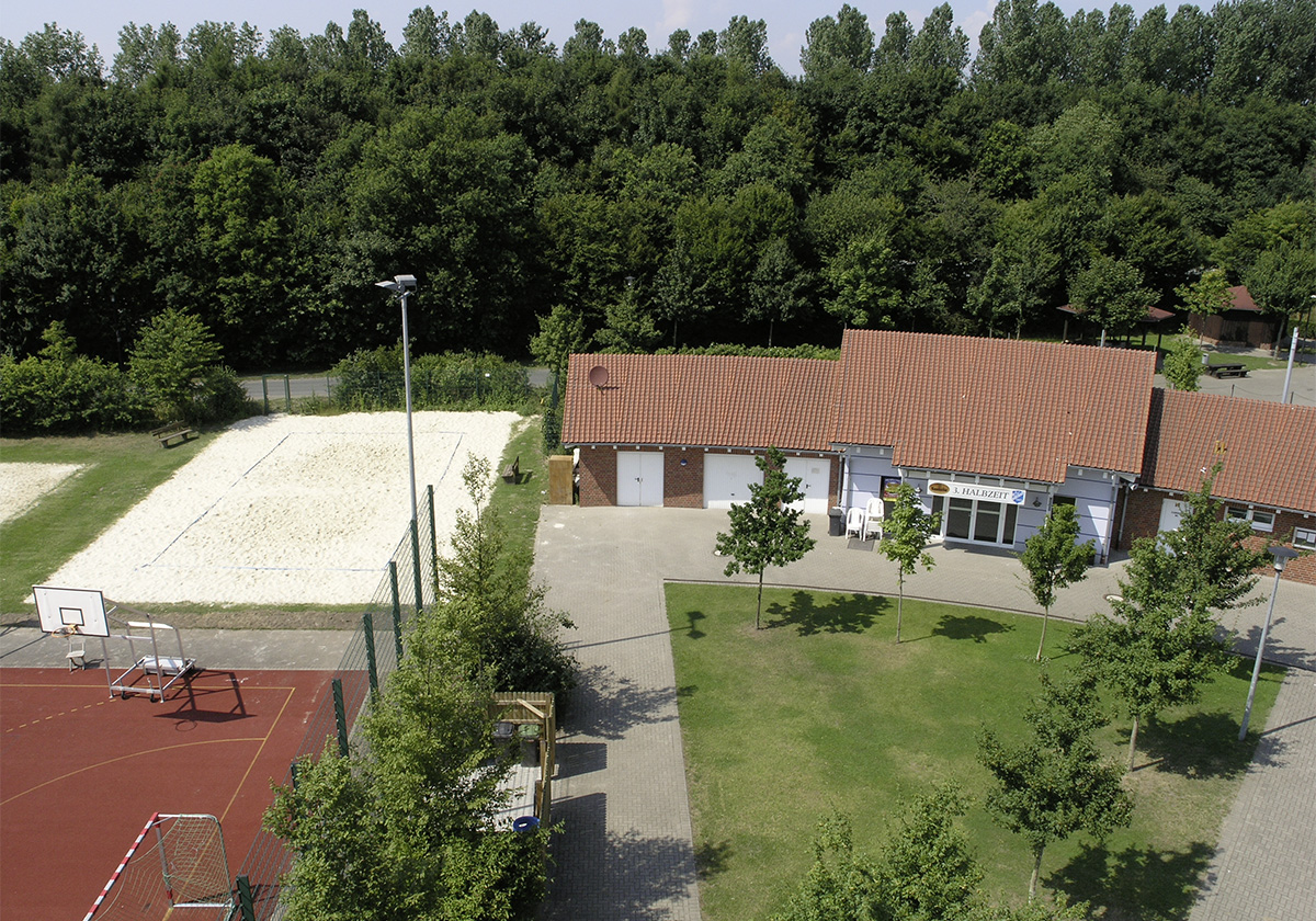 Die Anlage liegt am Gemeindeortsrand, in unmittelbarer Nähe zu drei Schulen. Die Umnutzung eines Tennenspielfeldes im Ortskern als Bauplatz und der Wegfall einer Schulsportfläche ermöglichten die Planung der modernen Sportfreianlage auf einem vollständig neu erschlossenen Gelände.
