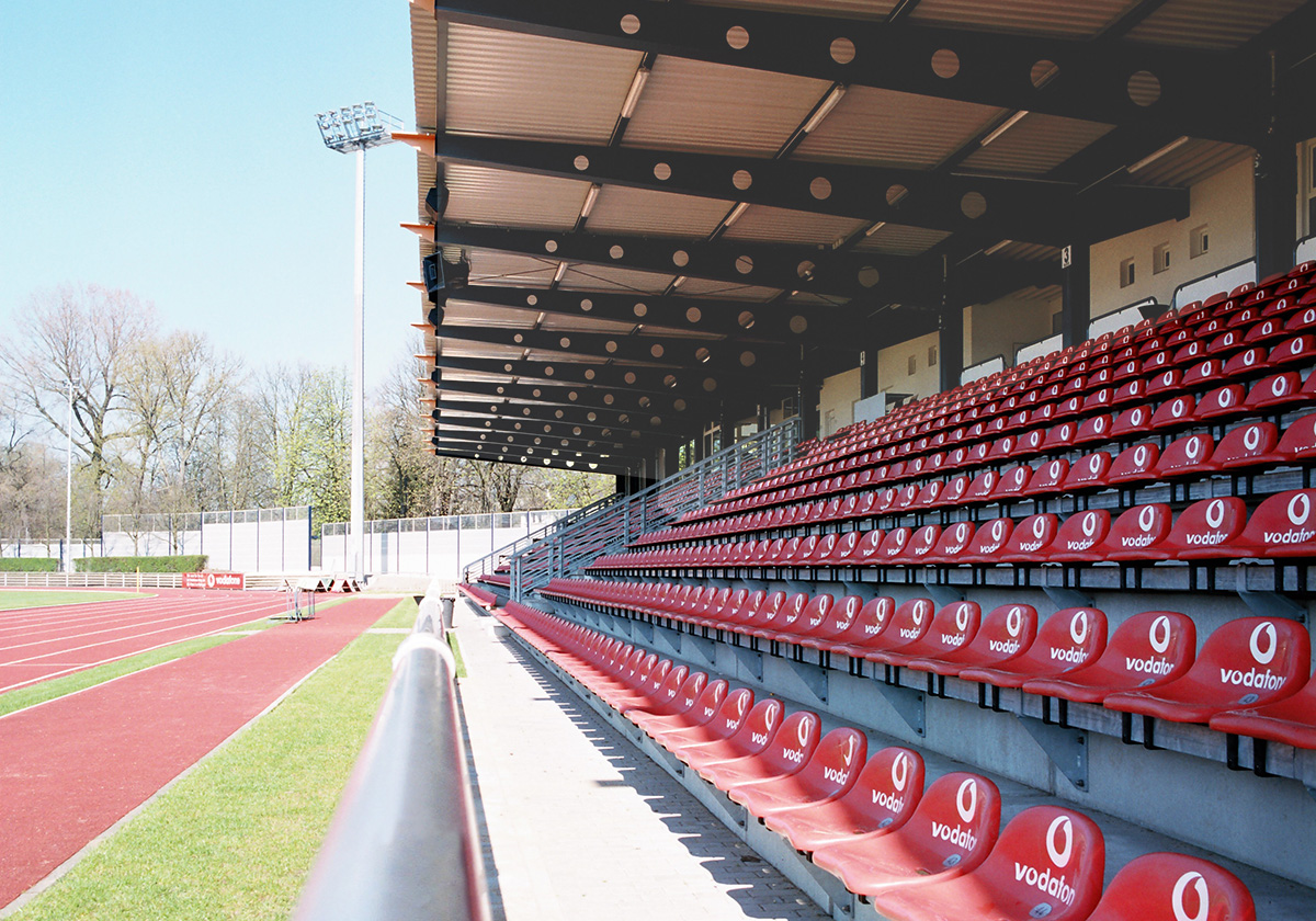 Die neue Tribüne mit 2.000 überdachten Sitzplätzen erlaubt es, attraktiv nationale Leichtathletikwettkämpfe, Fußballspiele, aber auch Freizeitveranstaltungen durchzuführen. Die erweiterte Laufbahn sowie der notwendige Lärmschutz bedingten, dass das Umkleidegebäude durch einen um 90° gedrehten Neubau ersetzt wurde.