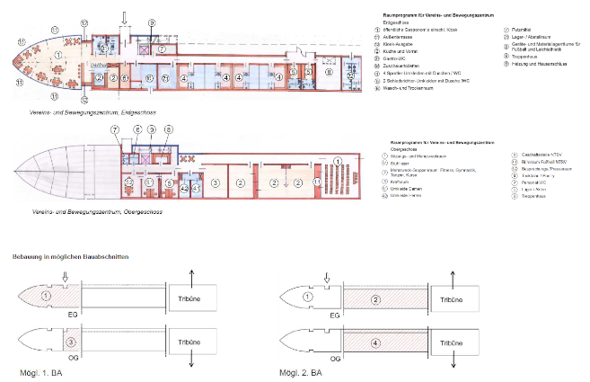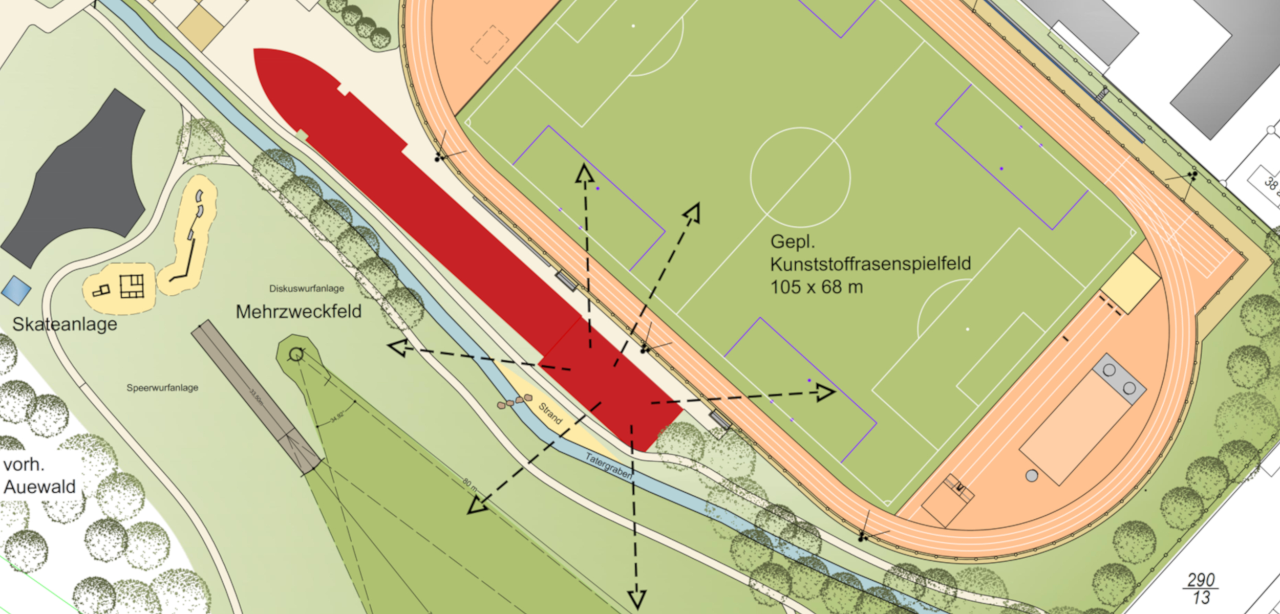 Sie soll nicht allein dem Schul- und Vereinssport vorbehalten sein, sondern auch für die Öffentlichkeit attraktive Freizeitsportangebote bereitstellen. Hohe Aufenthaltsqualität würde durch die Wiederbelebung eines Bachlaufs erzielt. Mit dem Vereins- und Bewegungszentrum erhielte das weitläufige Areal einen multifunktionalen, architektonischen Mittelpunkt.