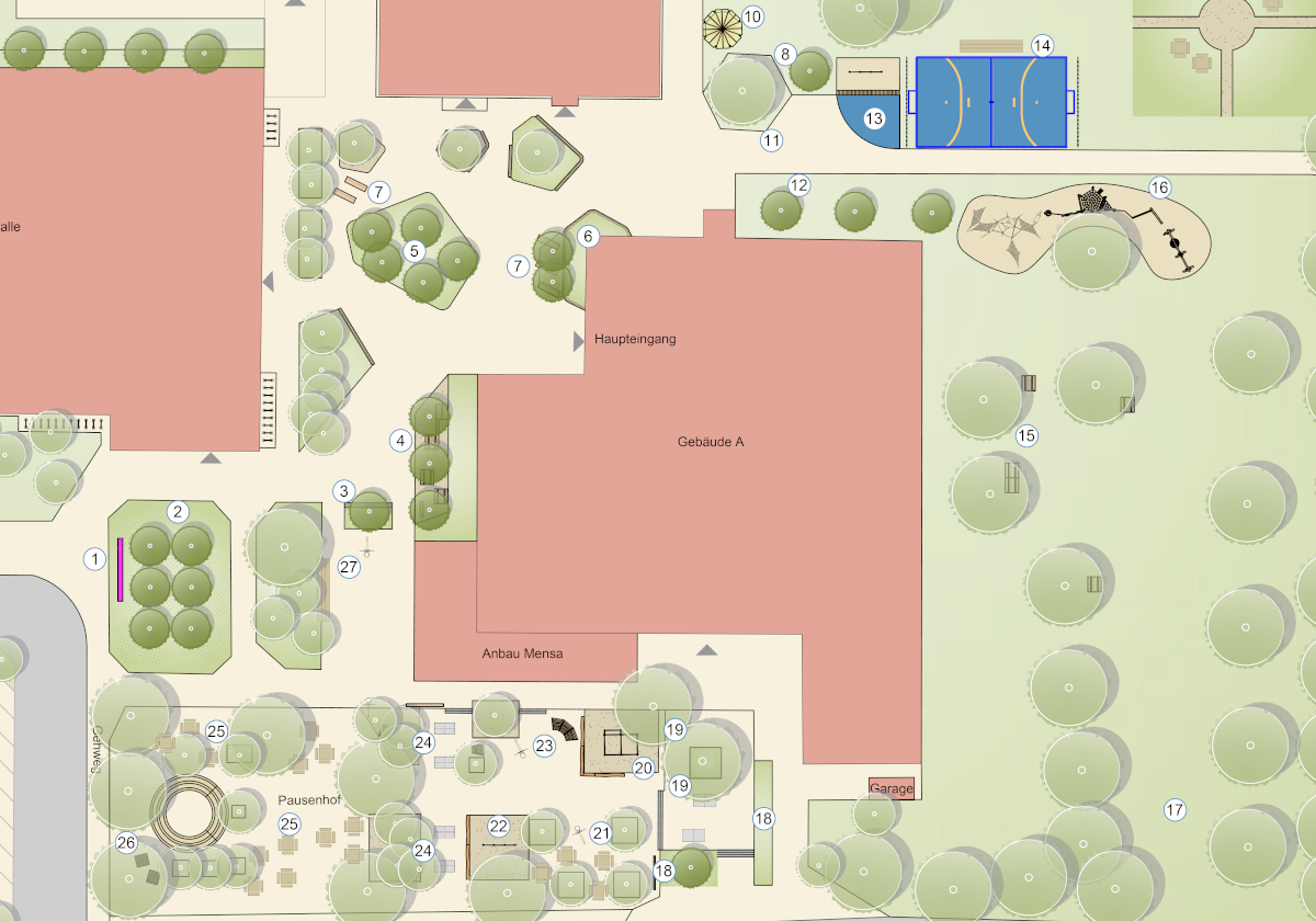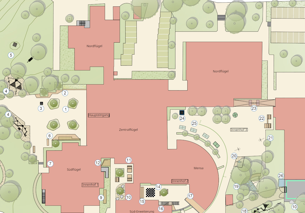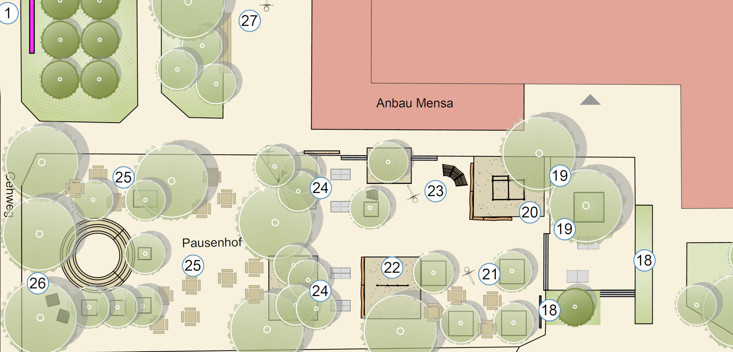 Unser Fokus lag auf der Schaffung von Bewegungsanreizen und Aufenthaltsqualität sowie Maßnahmen zur Beschattung und Abkühlung für die zunehmend heißen Tage. Basierend auf den ermittelten Kostenrichtwerten können nun die ersten Maßnahmen in den kommunalen Haushaltsplan aufgenommen werden.
