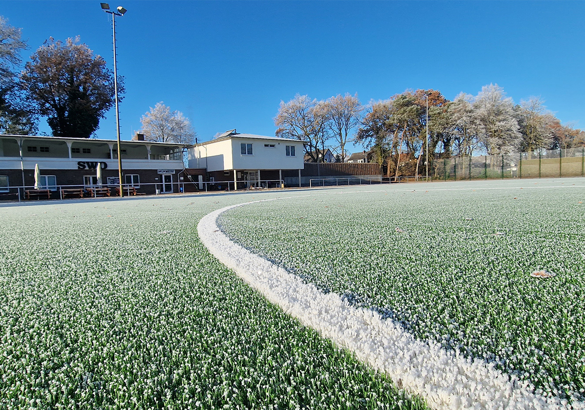 Neben der Schulsportanlage wurde nun auch das erste Kunststoffrasengroßspielfeld in der Gemeinde realisiert. Nach der planmäßigen Fertigstellung kann dieser im neuen Jahr vom Heimatverein SWO, aber auch von allen anderen Fußballvereinen der Gemeinde bespielt werden. Somit haben alle Spielverschiebungen und -ausfälle ein Ende und der Kunststoffrasenplatz kann intensiv und mit vollem Elan genutzt werden. Zur Freude aller Anwohner*innen wurde die angrenzende Wegführung geändert, sodass diese nicht mehr quer über den Sportplatz gehen müssen, sondern auf einem beleuchteten Weg um diesen herumgeführt werden. Zusätzlich wurde zu der Nachbarbebauung eine Lärmschutzwand errichtet. Um den Kunststoffrasen wurden 4 und 6 Meter hohe Ballfangeinrichtungen angeordnet, die einen sicheren Spielbetrieb ermöglichen.