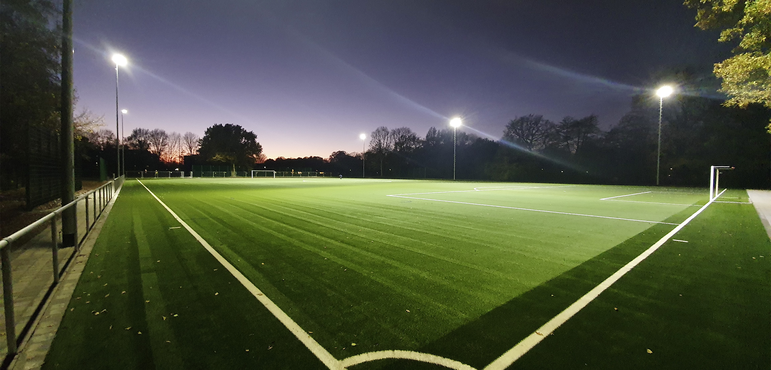 Damit, besonders in der dunklen Jahreszeit, ein reger Betrieb auf der Anlage stattfinden kann, wurde eine moderne Sportstättenbeleuchtung installiert. Auf den sechs Masten strahlen nun moderne LED-Strahler.
