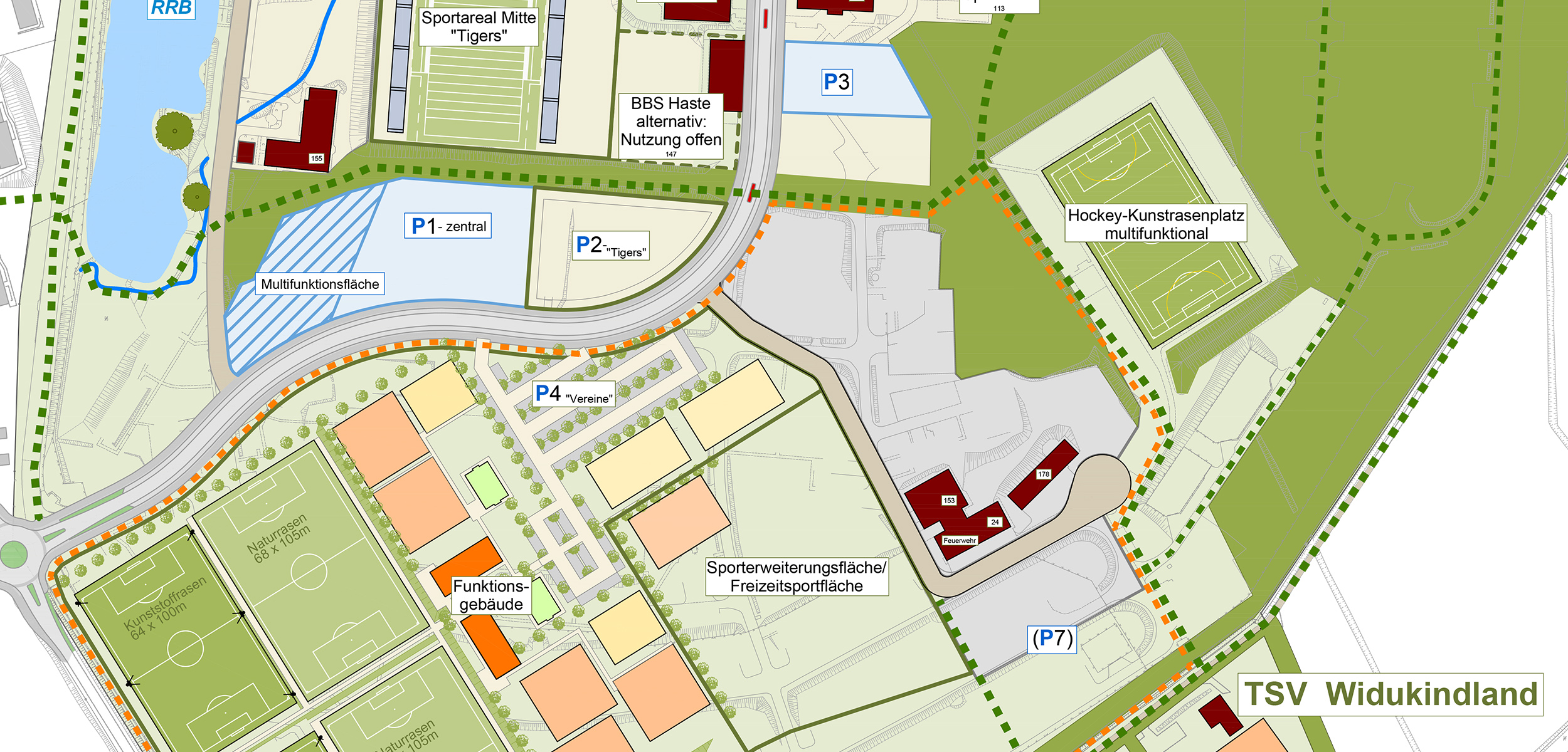 Zudem wurden in einer Marktrecherche potenzielle kommerzielle Nutzungen abgefragt – ohne Nachfrageergebnis. Für das Areal sah die Konzeptstudie eine Mischnutzung aus vereins- und nicht vereinsgebundenen Sport vor. Neben einem Vereinssportzentrum mit Rasen- und Kunstrasenspielfeldern schlug sie u.a. eine beleuchtete Laufstrecke, einen Fitnessparcours sowie Grünflächen für Trendsportarten vor. Zudem wurde in einer Variante ein Leistungszentrum für den VfL Osnabrück integriert.