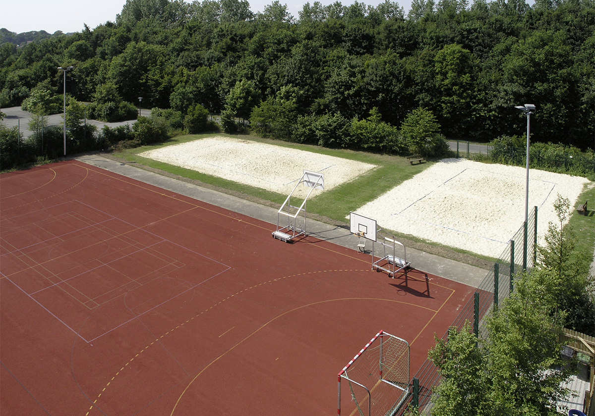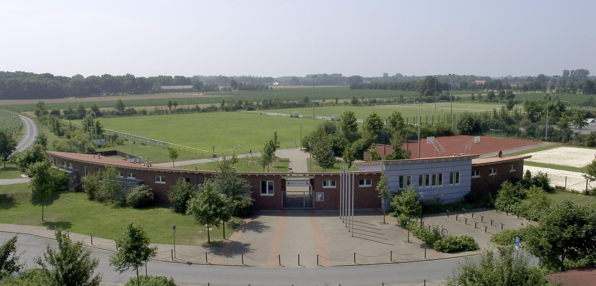 Die Anlage liegt am Gemeindeortsrand, in unmittelbarer Nähe zu drei Schulen. Die Umnutzung eines Tennenspielfeldes im Ortskern als Bauplatz und der Wegfall einer Schulsportfläche ermöglichten die Planung der modernen Sportfreianlage auf einem vollständig neu erschlossenen Gelände.